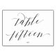 Simple Elegant Calligraphy Script Wedding or Dinner Party Table Number Fifteen written out in beautiful flowing fancy letters. A stylish yet simple formal design in black and white or any background colour you choose. Just click the customize further link, shown under the text personalization area on the right, and choose your custom colour background. This sign poster template makes it fast and easy to create stunning additions to your wedding decor. Signs can be enlarged, there are many sizes to choose from, as well as options for custom framing and matting. Welcome to our wedding custom signage.