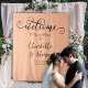 Elevate your wedding décor with this exquisite backdrop, where trendy meets timeless in a celebration of love and sophistication. Let the beauty of peach and the grace of calligraphy create a backdrop that frames your special day with elegance and contemporary allure.