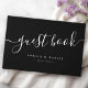 Elegant wedding guest book with the text "guest book" in an elegant calligraphy script font. White or custom colour text on black background. All colours can be changed in the design tool.