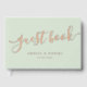 Elegant wedding guest book with the text "guest book" in an elegant calligraphy script font. Real foil text on light sage green or custom colour background. The background colour can be changed in the design tool.