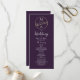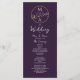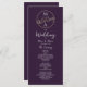 Elegant, chic, modern, minimalist, simple darn purple wedding program with unique hand drawn couple love birds monogram and trendy handwritten calligraphy script.