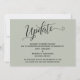 This suite's distinction is due to the elaborate, swirling script font used for accent phrases. In the event that you need to let your guests know that your wedding has been cancelled, this card provides an elegant option. In this piece, the calligraphy font was used to create a graphic depicting the word "Update". Use the template fields to add your personal details and make this design your own. The background can be changed to any colour you prefer. Please reach out with any special requests or for customizing assistance. // 98 //