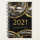 Livre de rendez-vous 2021 moderne, élégant et élégant. Le design présente des géodes en marbre motif en or, noir, gris et l'année 2021 en or. Personnalisez avec un nom dans la calligraphie tendance écriture manuscrite. Parfait comme cadeau pour la nouvelle année.