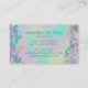 Beau art irisé avec de grandes formes de parties scintillant et des éclaboussures d'aquarelle violette. Customisez avec votre nom, votre type d'entreprise, votre titre et vos coordonnées, les médias sociaux et l'emplacement. Parfait pour les coiffeurs, maquilleurs, cosmétologues, et bien plus encore !