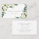 Cet élégant carte de visite à fleurs blanches conviendra parfaitement à un propriétaire de petite entreprise, consultant, styliste et plus encore ! Le design vintage moderne présente de magnifiques rose de couleur d'ivoire et crème et des fleurs de pivoine avec des feuilles vert foncé, de la verdure et des botaniques.