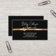 Un carte de visite élégant au design noir et faux or qui offre de l'espace pour votre nom, profession, numéro de téléphone, adresse et site web.