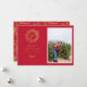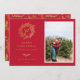 Élégant monogramme de couronne de pin d'hiver or, carte photo de vacances en rouge festif. Caractéristiques de la carte correspondant au support motif doré et à plusieurs lignes de modèle pour votre accueil personnalisé.