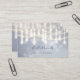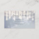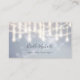 An elegant silver bokeh business card embellished with hanging chandelier style lighting and sparkling string lights. Personalize by adding your name as well as your boutique or business of choice.