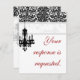 Elegant Chandelier Wedding Reply Card BW damask