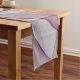 The textile quality is very good. An excellent compromise between durability and threads-per-inch count (for good image quality). The stitching of all edges is very tidy. A very detailed and helpful care label is attached. The label reads "100% cotton", and the item feels like canvas (which should provide good durability and long service life).