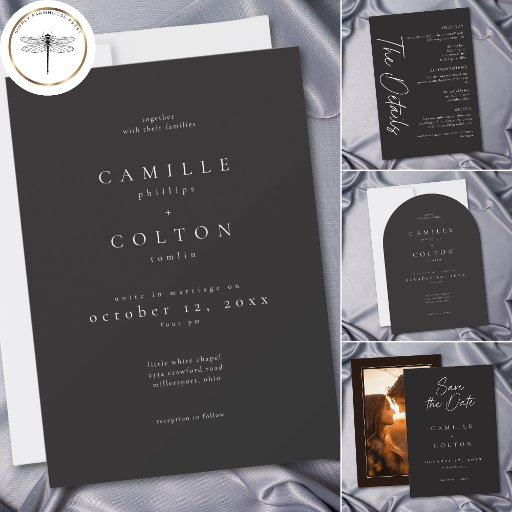 Elegant Charcoal Black Minimalist WeddingDesigned by Kathe Santillo