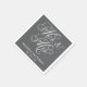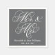 Wedding napkins feature "Mr. & Mrs." in a white calligraphy script font with custom monogram design that can be personalized with the bride and groom's married name and wedding date. Charcoal grey and white colour scheme.