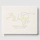 Cet élégant livre d'hôtes en feuille d'ivoire d'or de charme est parfait pour un mariage simple. Le design minimaliste moderne présente une calligraphie romantique à feuille d'or pressée intemporelle avec style conte de fées bohème sur un arrière - plan crème d'ivoire. Personnalisez votre livre d'or mariage avec le nom du couple et la date du mariage.