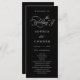 This black and white wedding ceremony program features elegant, romantic swirly calligraphy lettering with a formal script. For more advanced customization of this design, please click the BLUE DESIGN TOOL BUTTON above!
