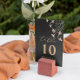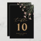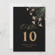 A freestanding table number card adorned with delicate wildflower illustrations on a black background.
