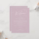 Cet élégant modèle d'itinéraire mariage rose charme est parfait pour un mariage simple. Le design minimaliste moderne présente un rose rose poussiéreux intemporel et une calligraphie romantique avec un style de conte de fées bohème, parfait pour un mariage de jardin de printemps ou d'été. Le recto de la note de sac de bienvenue comporte une lettre de bienvenue mariage et le verso présente la chronologie de l'itinéraire mariage. Ces notes sont parfaites pour les mariages de destination et les sacs de bienvenue des clients de l'hôtel.