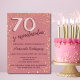 Celebra los 70 años con distinción y elegancia con nuestra invitación de cumpleaños para mujeres, totalmente personalizable en español. Este diseño encantador presenta un fondo rosa suave adornado con destellos dorados brillantes, que reflejan la alegría de una ocasión tan especial. El número "70" resalta en un sofisticado tono metálico, añadiendo un toque de lujo y glamour.