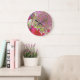 Elegant Chartreuse Green, Pink and Blue Hydrangea Large Clock