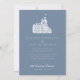 Impress your guests with this elegant wedding invitation by JessicaAmber. This classic card features a detailed vintage illustration of a château castle, which you can replace with an image of the destination where you will be married (transparent background preferred). Elegant white lettering displays the bride and groom names, with the first name in a loopy script, and the last name in a serif. Below that are details of the wedding, including the location, date and time. The invite is on a beautiful French blue background. This invitation is preferred for when the couple are hosting the event themselves. Browse my collection for the matching invitation suite. ••• For more wedding suites, visit my store Zazzle.com/EventsByJessicaAmber ••• For custom orders, message me on Zazzle
