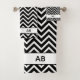 Elegant Chevron Pattern on Black White Monogrammed Bath Towel Set