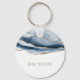 Elegant Chic Abstract Agate Blue Gold Watercolor Keychain