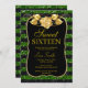 Elegant Chic Black Green Glitter Rose Sweet 16 Invitation