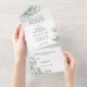 Elegant Chic Eucalyptus Wash Gold Greenery Wedding All In One Invitation