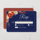 Elegant chic fall orange navy floral wedding RSVP card