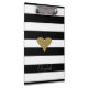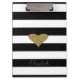 Elegant Chic Faux Gold Glittery Heart On Stripes Clipboard