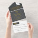 Elegant Chic Grey Gold Monogram Modern Wedding All In One Invitation