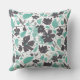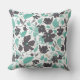 Elegant Chic Grey Teal Floral Pattern Throw Pillow