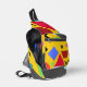 Elegant gemetric, graphic artwork in vibrant background, yellow, burgundy, blue and so on.