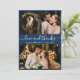 Elegant Chic Navy 3 Photo Collage Wedding Thank You Card