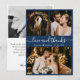 Modern, Elegant "Love and Thanks" Script Navy Wedding 3 Photo Collage Thank You Card. Stylish wedding thank you card template featuring (3) three photo on the front and (1) one photo on the back. With the text "Love and thanks" script in a cursive swirly hand lettered typography swash-tail font in black colour on dark navy blue colour background. Personalize your custom name and thank you message. If you prefer to handwrite your note, just delete the sample text to make more space. If You need help or matching item, please contact to me!