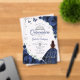 Navy silver Quinceanera celebration acrylic invitation. Features brunette girl in ball gown dress, script font, silver butterflies, navy blue roses and tiara. Perfect for an elegant princess style glam celebration. Personalize with your own details. Stylish transparent or frosted acrylic invitations.