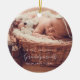 An elegant and chic calligraphy and a modern design for this photo ornament gift. To customize with your favourite baby picture. You can also easily change the colour of the font to your liking. Perfect to celebrate your First Christmas as new grandparents.