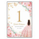 Elegant Chic Pink Roses Gold Quinceanera Table Number