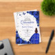 Royal blue silver Quinceanera celebration acrylic invitation. Features brunette girl in ball gown dress, script font, silver butterflies, roses and tiara. Perfect for an elegant princess style glam celebration. Personalize with your own details. Stylish transparent or frosted acrylic invitations.