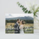 Elegant Chic Script Love Heart Wedding Photo Thank You Card