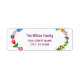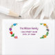 Stylish custom return address label for a family (can be customized for one person as well), with a floral motif around the left and right edges, and with an elegant, contemporary handwritten informal script for the family name or person's name.