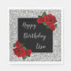 Elegant Chic Silver Glitter Red Roses Birthday Napkin