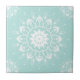 Elegant Chic White Teal Floral Geometric Mandala Ceramic Tile