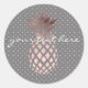 Modern and feminine design featuring faux rose gold pineapple and polka dots background.
