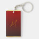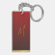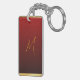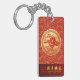 An elegant visual of a snake in red with blossoms into a circle (inspired by traditional Chinese paper-cut) with golden circle overlay a red and yellow traditional Asian pattern + graphic "HAPPY NEW YEAR" in Chinese and English and old Chinese calligraphy for "snake" on gradiant red colour band. Design on rectangular keychain with monogram to personalize in back..