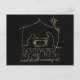 The miracle of Christ's incarnation--God the Word becoming flesh to redeem and save sinner and restore them to God the Father by the drawing and regenerating power of God the Holy Spirit--is the real meaning of Christmas for those who believe. Bless others with this modern and elegant Christmas postcard featuring simulated gold line art of Christ's nativity on a black background along with John 1:14 bible verse which proclaims: "God's Word became flesh and dwelt among us" The back side displays a lovely Christmas greeting which can be personalized along with your name and address, if desired.