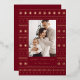 Bring cozy winter cheer to your greetings with this charming holiday card inspired by a Fair Isle sweater pattern. The rich burgundy red background is covered in festive stars, hearts, and snowflakes, all shimmering brilliantly in eye-catching rose gold foil. Your cherished family photo is elegantly framed, with the greeting "Merry Christmas" and your family name beautifully accented in matching rose gold foil for a stylishly warm and traditional look.