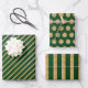 Elegant Christmas Emerald Green Gold Pattern Gift Wrapping Paper Sheets.