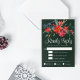 This beautiful holiday RSVP card features a gorgeous watercolor of red poinsettia flowers and pine leaves for Christmas. An elegant winter wedding invite in dark hunter green. A festive celebration of love for the holidays. Personalize the back of this poinsettia floral response card with the couple's monogram initials.