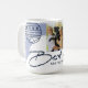 Celebrate the holidays with this elegant family Christmas mug, featuring your personalized family photo framed by festive blue ornaments and pine illustrations. This beautiful design captures the warmth and joy of the season, making every coffee or tea break feel more special. Personalize it with your family photo for a unique holiday keepsake that brings cherished memories to life all year long!