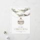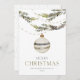 This elegant Christmas card features a minimalist design with a single silver ornament hanging under greenery. The delicate branches and muted tones give it a sophisticated, festive feel. "Merry Christmas" is printed in stylish lettering, creating a warm and welcoming holiday greeting.